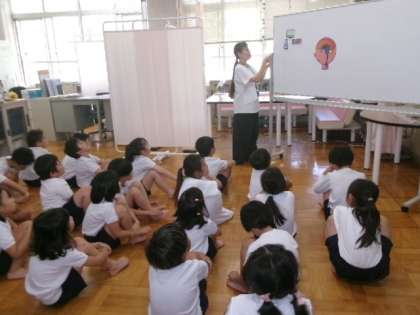 また、養護教諭から「脳について」の話を聞きました。ゲームやユーチューブなどのメディアを見すぎると脳の考える力が弱くなるということや、脳に良い食べ物ってどんなものかなという話を聞き、子ども達はしっかりと考えを深めている様子でした。