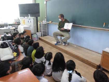 今週は秋の読書週間になり、学校でも様々な取組を行っています。今日は、先生方による読み聞かせがありました。いつもとは違う先生の読み聞かせに、子どもたちも嬉しそうに聞き入っていました。短い時間でしたが、子どもたちと本をつなげる一助になっていたら嬉しい限りです。ご家庭でもこの読書週間を活用して、是非本に親しむ取組にチャレンジしていただけるとありがたいです。