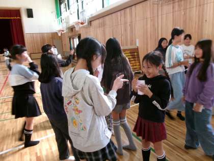 総合的な学習の時間では、「世界がもし100人の村だったら」のワークショップの活動をしました。世界中の人口を100と想定することで、どの言語を使う人が多いのか、また、富裕層は世界の人口のどのくらいの割合なのかなどを体験し、そこにある課題などについて考えることができました。