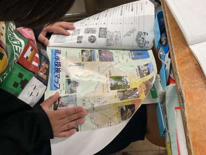 疎水探検マップを見ながら社会見学で訪れた場所を振り返っていました。