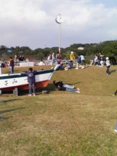 上着がいらないほどの暖かさです。入所式のあと芝生広場