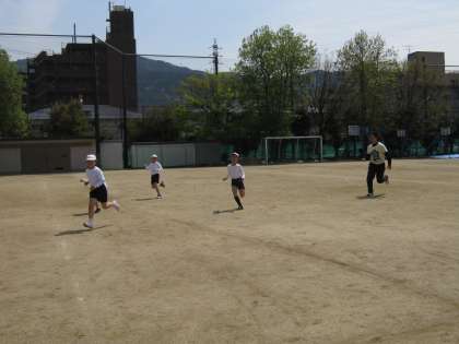 また体育では鬼ごっこをして、みんなで走り回っていました。