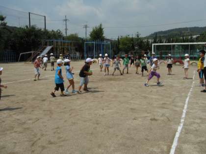 1年生は転がしドッジボール、2年生以上はドッジボールをして学年で対決しました。