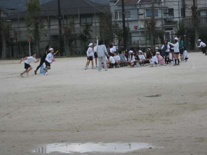 運動場では5年生が対抗リレー大会をしていました。