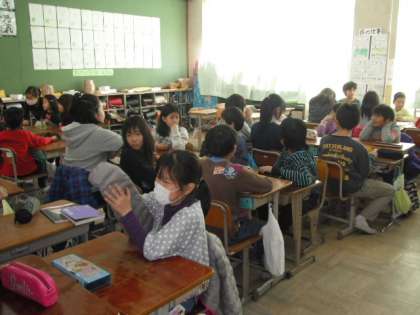 プレゼントをもらった6年生は、うれしそうにしていました。