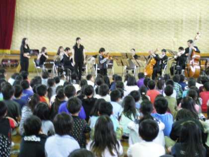 『ヴァイオリンを弾いてみよう』のコーナーがありました。今までヴァイオリンをさわったことがない人で、弾きたい人の中から2人選ばれました。2人とも上手に音を出し、会場からは歓声が上がりました。