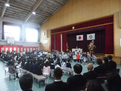 入学式では,大きな声であいさつをしていました。元気いっぱいの1年生です。