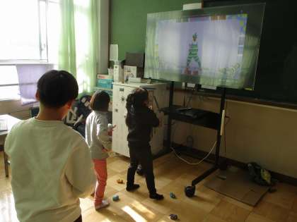 1、2年生のみんなでダンスを踊ったり、フープ遊びをしたりしました。ダンスは「ののののせーる」や「パプリカ」を踊りました。久しぶりのダンスにみんな大喜びでした。フープは転がしたり、腰や床で回したりして楽しみました。みんなで仲良く活動できました。