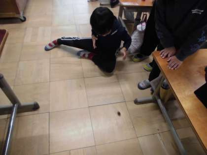 秋のものを使ったおもちゃで遊んでいる様子です。