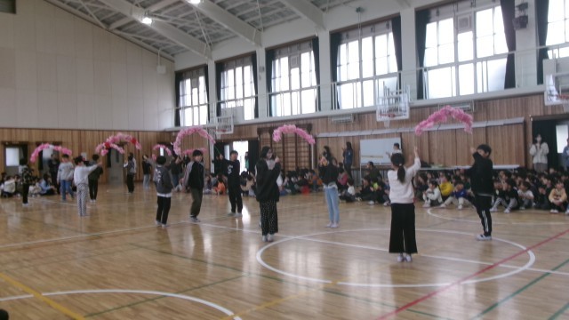 今日は、体育館で6年生を送る会が行われました。