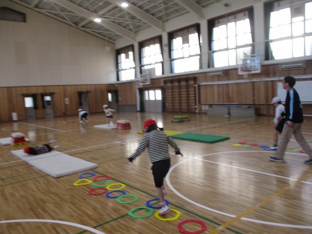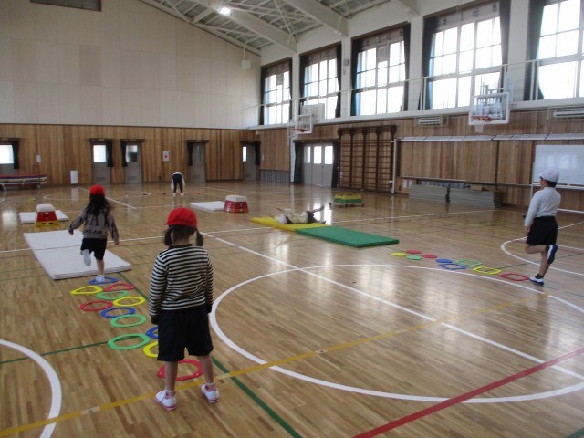 体育の時間に「サーキット運動」をしました。ケンパやマット運動、とび箱運動、なわとびなど色々な運動を組み合わせた活動をしました。自分たちで動きを考えて工夫しながら活動できました。準備や片付けも協力して行えました。