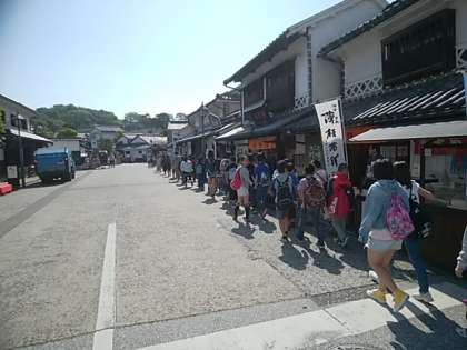 倉敷美観地区に到着しました。2回目の買い物タイムです。グループでお店をまわりお土産選びを楽しんでいます。
