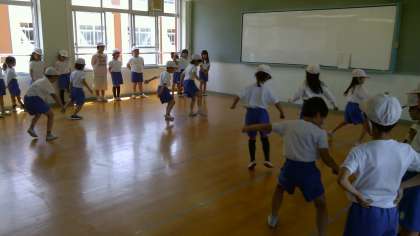 立ち幅跳びと反復横跳びの2種目に挑戦しました。初めての取り組みに緊張した様子でしたが,とても一生懸命取り組むことができていました。