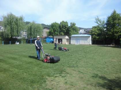 雑草抜きなどの手入れは10月まで隔週で行いますが,芝刈りは毎週必要で,おやじの会をはじめ,芝生ボランティアの方にお世話になります。よろしくお願いします。