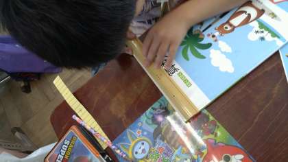 今日は,算数科の「長さ」の学習で,ものさしを使って教科書の縦と横の長さを測りました。cmやmmの単位を知り,細かい目盛りに苦戦しながらも楽しんで取り組むことができていました。