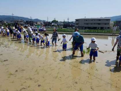 初めての田植えに,はじめは,緊張した様子でしたが,楽しんで取り組むことができていました。田植えを終えた直後に「また田植えをしたい。」という声がたくさんありました。次の稲刈りも楽しみにしていました。