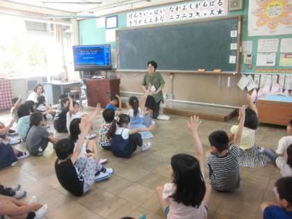 今日は,今年度初めての図書ボランティアさんによる読聞かせがありました。きらら,1,2,6年が対象でした。お話を聞いていないと後で「なぞなぞ」に答えられない本を読んでいただいたり,高学年はブックトークをしてくださいました。