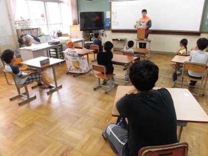 紙芝居に図書館学習,読み聞かせ…と,本と親しむ時間をたっぷりとっています。時にはクイズ形式にしたり,物語の先を予想したり,楽しい時間を過ごしています。
