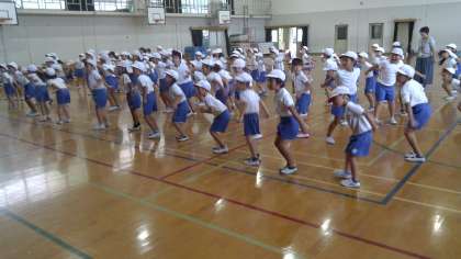 今日の3,4時間目の授業で初めて運動会で踊るダンスの練習をしました。
