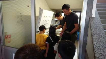 清水焼の職人さんに来ていただき,以前作って素焼きしたお茶碗に,釉薬(ゆうやく)をかけてもらいました。