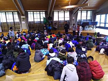 入所式です。元気に校歌を歌い,山の家の所員さんのお話を聞きました。安全や挨拶など大事なお話をしっかりきくことができました。