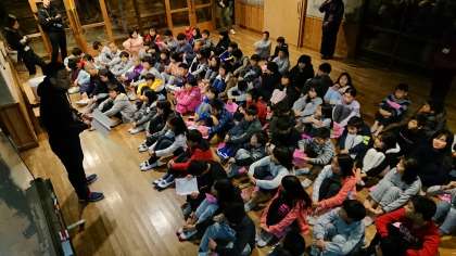 お風呂から上がった子どもたちは,部屋で過ごし,20時45分から一日のふりかえりをしています。