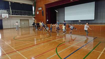 歓声を上げながら,子どもたちもみんなで交流を深めました。