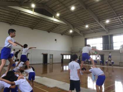 6年生は組体操の練習に励んでいます。なかなか技が決まらず気持ちが落ち込んでしまうこともありますが,練習を重ね,技ができた時の喜びを味わいながら,本番に向けて頑張っています。