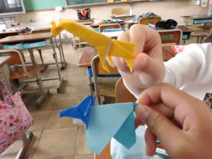 今日は肌寒い日となりましたね。気温の変化が激しい日が続いています。みなさん,体調管理に気を付けて,過ごしてくださいね。今日は折り紙や裁縫に熱心に取り組んでいました。