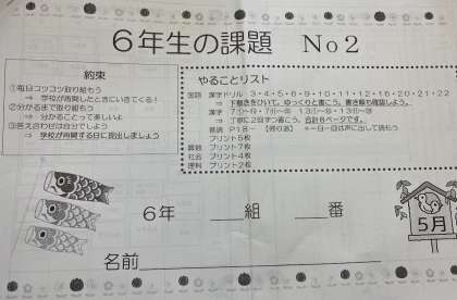 5月7日(木) 6年生 5月の課題