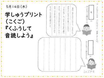 音読は,めあてをいしきしながらできていますか?きょうのこくごのしゅくだいには,ふきのとうを音読するときに,くふうしたことをかくプリントがでています。