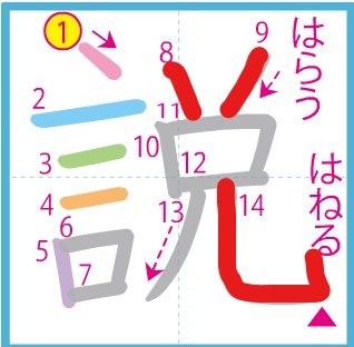 ○「説」…8・9画目の点をわすれずに書きましょう。14画目はしっかりはねます。