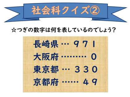 それでは,正解の発表です。答えは「島の数」でした。日本の中では長崎県に一番たくさんの島があるのです。ちなみに,国際ルールでは湖の中にある島はカウントしませんので,滋賀県も「0」になります。