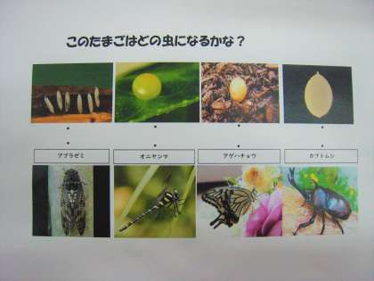 こんにちは!とつぜんですが,3年生から理科の学習がはじまります。みなさんしっかりとじゅんびができていますか?上のしゃしんは,4つのたまごと,それらのたまごがせいちょうしたすがたです。どれがどのこん虫になるかわかるかな?答えを考えてみましょう!