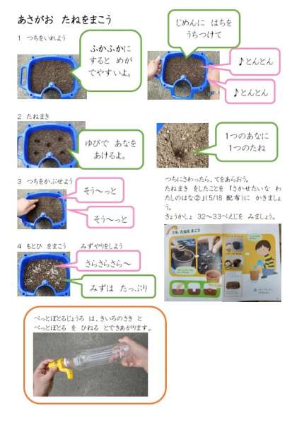 あさがおセットを とりにきたひとは たねをよくみて,