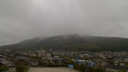 今日の午前中はあいにくの雨もよう。でも,その代わりに雨雲(乱層雲)を観察することができました。上の写真は今日の5年生の教室から写した雨雲です。