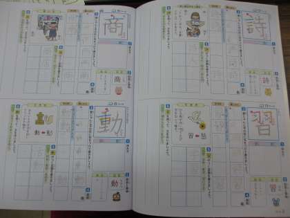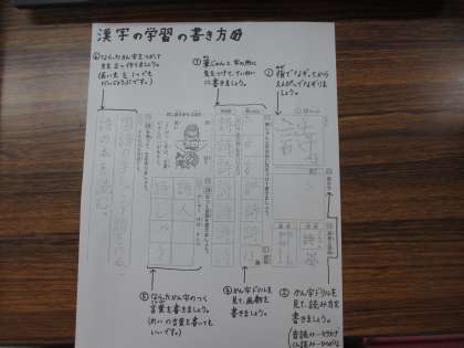 漢字ドリルを見て,音読み(おんよみ)はカタカナ,くん読み(くんよみ)はひらがなで書きましょう。くん読みの送りがなは,赤えんぴつで書きましょう。