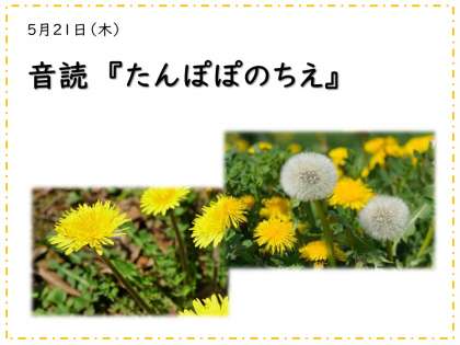 きょうのしゅくだいはもうしましたか?きょうから音読が「たんぽぽのちえ」になりますね。音読をするときのめあてを2つ,下にかいておきます。