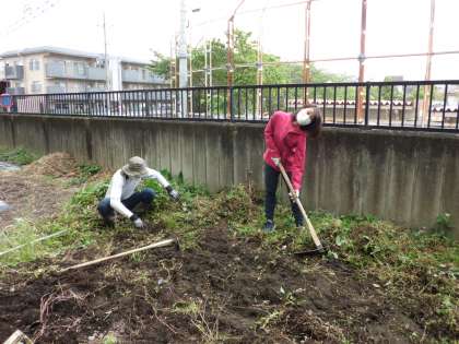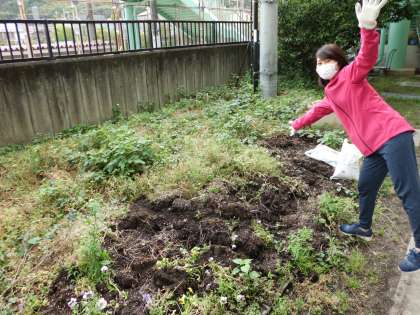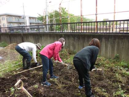 今日は4年生の畑を耕しました。はじめは雑草だらけの畑でしたが,くわをふり,雑草を抜き,土を掘りかえし,耕すこと30分。きれいな畑になりました。