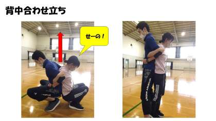 背中合わせで立てるかな?座った状態からもぜひ挑戦してみて下さい!