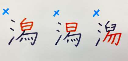 ○新潟県の「潟」…とってもむずかしく,まちがえやすい漢字です!まちがいの例を書いてみたので,正しく書けているかたしかめよう!