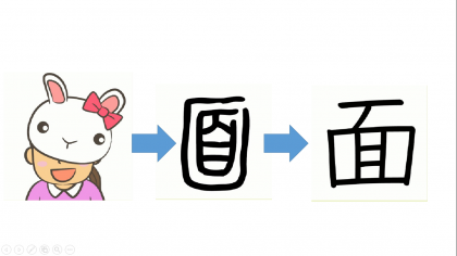 左の女の子がかぶっているのは,おめんです。そこから「面」という字がうまれました。