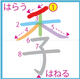 ○「季」…1画目は右から左に少しはらいます。まっすぐにしたり,書き忘れたりしないようにしましょう。