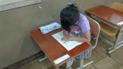 2日(火)と3日(水)は,自己紹介カードを書いたり,ひらがなや数字の書き方の復習をしました。正しい姿勢と鉛筆の持ち方を知り,お手本をよく見て書きました。マスの中の4つの部屋を意識してゆっくりと丁寧に書き,たくさんの先生に花丸をもらったり,アドバイスをもらったりしました。学校で長い時間過ごすことは初めてでしたが,落ち着いて取り組むことができていました。