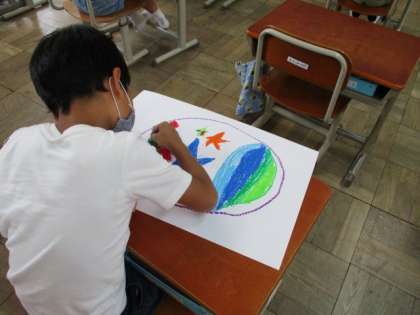 ずこうのじかんに,じぶんだけのひみつのたまごをかきました。「どんな色にしよう?」「かたちはどうしようかな?」たくさんのことをそうぞうしながらかきました。「たまごが,ぱかっとわれたら・・・」とつづきのお話をかんがえている子もいました。
