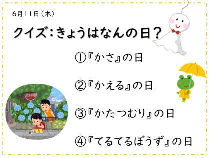 きょうは雨にかんするきねん日なんです。さて4つの中のどれかわかるかな?