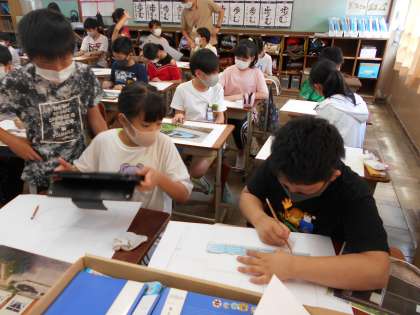 自分たちの学校の中で大切だと思う風景を絵に表していきます。今日は下絵をかきました。季節や時間帯もイメージして作品を創っていきます。完成が楽しみです。