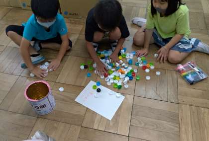 生かつの「あそんでためしてくふうして」の学しゅうで,グループごとにあそびをきめて「あそびの会」をひらいてみんなであそびあうことにしました。