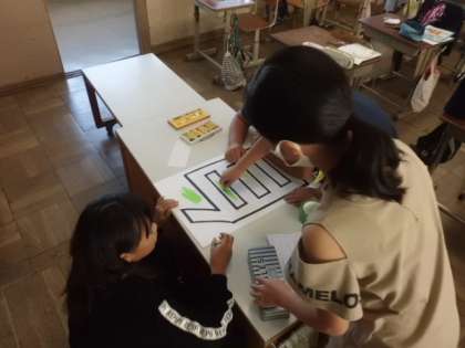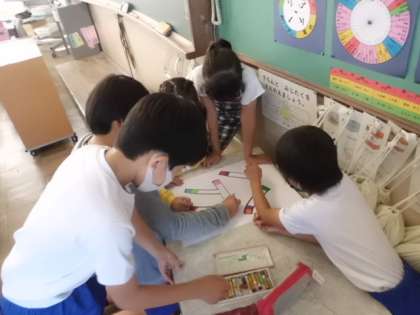 百々リンピックのスローガンの文字を塗りました。百々リンピック当日に掲示されるので,また,ご覧いただけたらと思います。