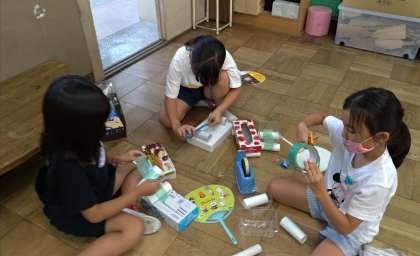 友だちとたすけあいながら,じぶんのおもちゃがすこしずつ形になってきました。